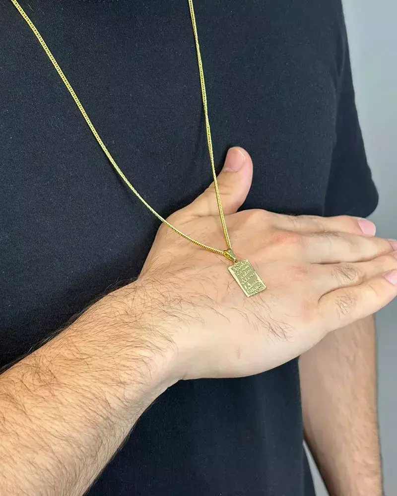 CORRENTE GRUMET 2MM - 70CM + PINGENTE O SENHOR É MEU PASTOR