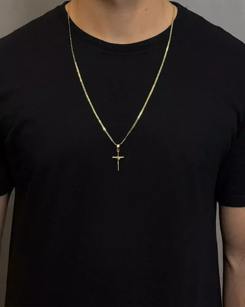 CORRENTE PIASTRINE 2MM - 70CM + PINGENTE CRUZ ENROLADA (BANHADO A OURO 18K)